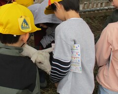 まず、高志小学校でやぎや1年1組の子どもたちと交流しました。やぎのふわちゃん、もちちゃんを紹介され、エサやり体験をしたり、一緒にお散歩をしたりしました。「友達ができたよ。」とうれしそうに話していました。