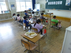 4月10日(金)入学して初めての給食です。メニューは、定番かつ大人気のカレーです。モリモリ食べてました。